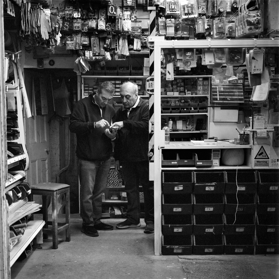 | Joint owners of K&H Timber Supplier brothers Ahmet and Hasan Kasim chat in their shop front on Lea Bridge Road, London. | ||||