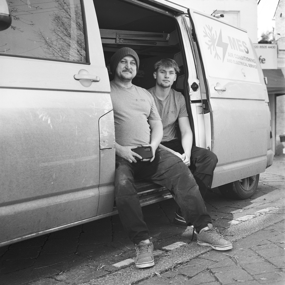 I am fascinated by small business owners, the backbone of the economy. Hard working people plying their trade often from vans. What interests me is how all the necessary tools of their trade are crammed into these vans. Only the van owner knows exactly where each specific tool is hidden in what to everyone else looks like a chaotic mess. I plan an ongoing series of portraits, which means I will have to start to always carry my Rolleiflex with me, not a bad thing. I will ask then a few simple questions, when they set up the business and why along with the pros and cons of being self-employed. I will also shoot a detail picture inside their van so you can also enjoy the chaos. |