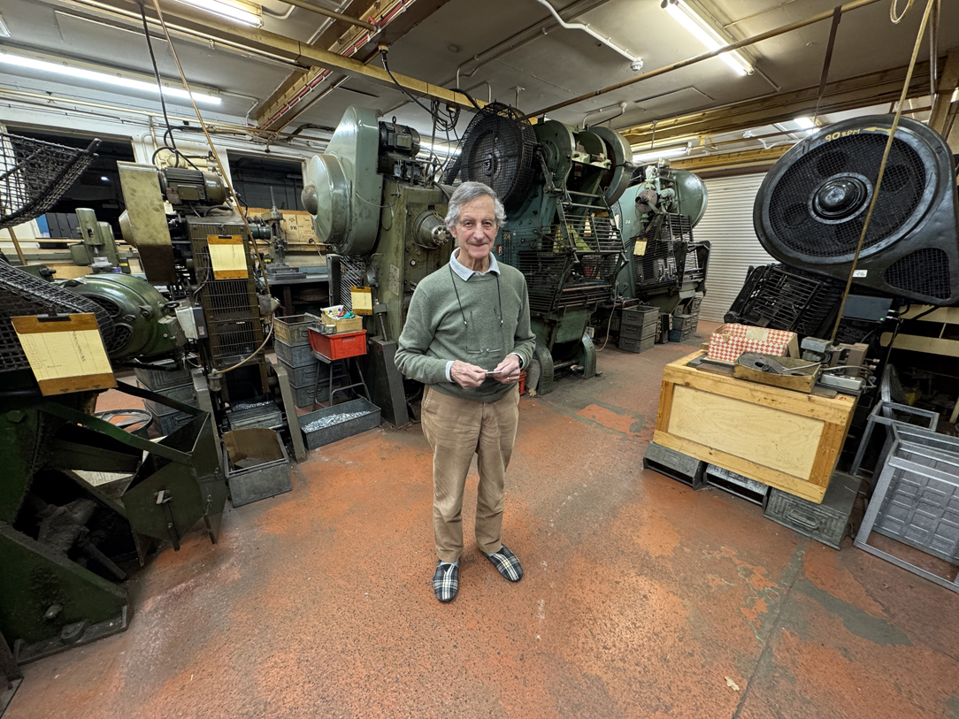 Ken Allen, 88-year-old owner of Essex Engineering Works Ltd, on his factory floor that has now ceased to trade. From 1946 to 1956 his company made 150,000 small sewing machines each having around 35 components, all presswork and machining was done in house. From 1946 until September 2025, it made hundreds of thousands of terminating tools and hundreds of millions of fixing clips. From 1959 until it ceased trading, the company made and sold all over the world around 1.2 million coin slide mechanisms. Each mechanism having around 35 components, all presswork and machining again made in house. Ken now lives in a flat above his silent factory, the machines all left in situ. Ken hopes to turn his factory into a museum about manufacturing. Click on the picture to see more. |