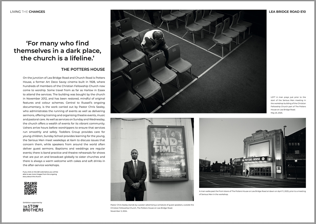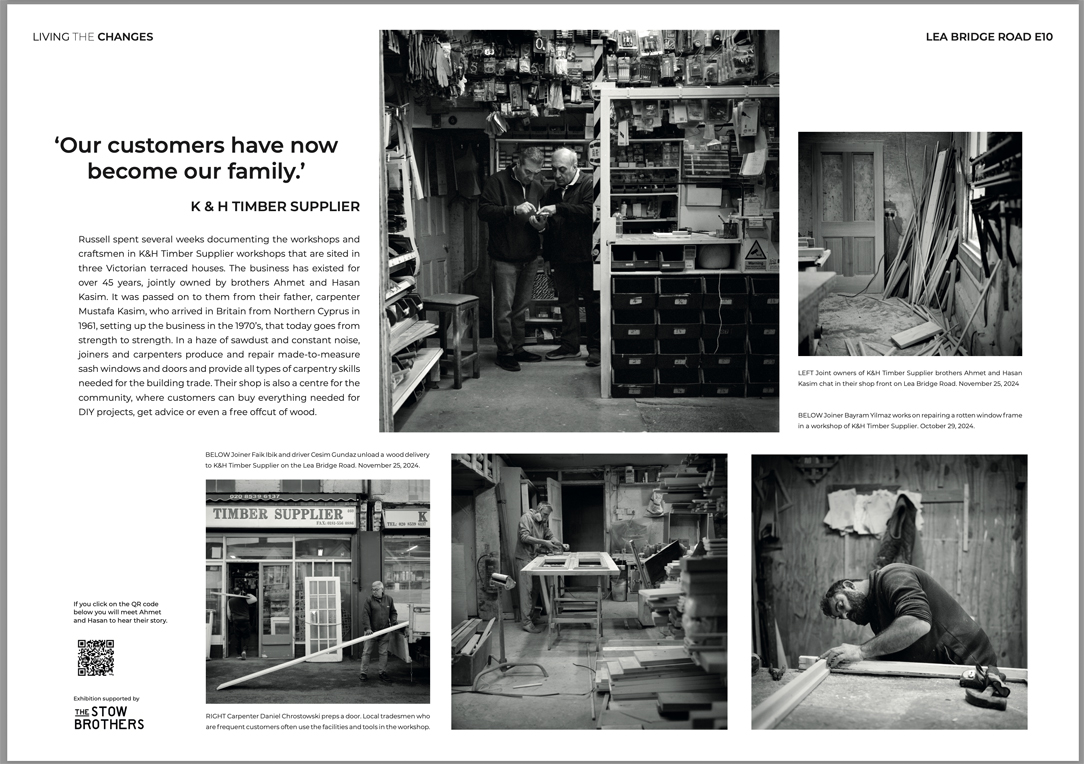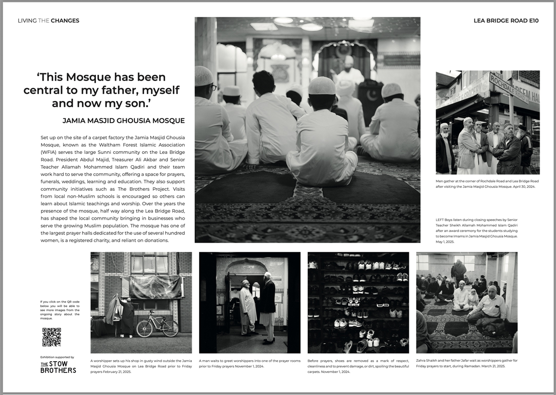 Living The Changes is the title of my exhibition of the environmental portraits and in-depth stories I have been shooting along the Lea Bridge Road for the last four years. The River Lea was bridged in 1745 as the road grew into a main commercial route into London. Today a journey down the same route offers a wealth of diverse culture, food, social change, faith, industry, commerce, migration and leisure. But unless you are a proud member of this community, it can go unnoticed, as people travel from Waltham Forest into Hackney along the A104 during their daily commute.